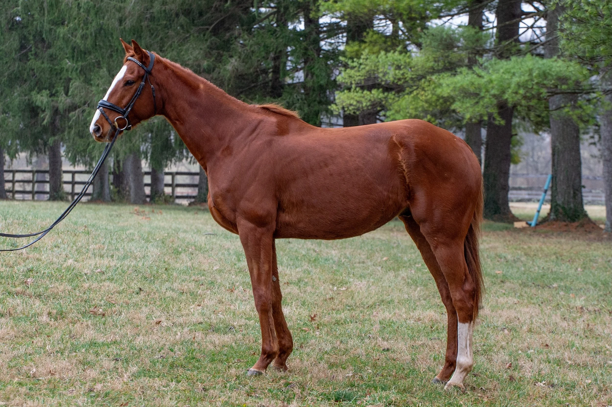 Affectionately known as Gunner currently in the barn (JC: D’Pistol) has retired from 8 starts (last in Feb 2025) and since been getting let down primarily with lots of turn out. He is an affectionate horse to handle, enjoys being groomed and bathed, trailers, ties, stands for vet, farrier, etc. He enjoys turn out in a group, lower end of the hierarchy typically. Gunner has been restarted lightly and is RRP eligible! He has demonstrated a very AA/YR friendly mentality already and has been great for riding in the arena or hacking around the farm. Shows willingness undersaddle and I could see him going multiple directions as a sport horse. Currently barefoot. Located in Lexington KY. Mid-upper fours before advancing in his training, would love to see him at TB Makeover! W/T/C under saddle and popped over x-rails willingly and honestly.